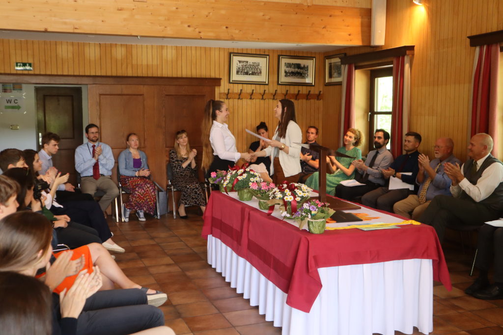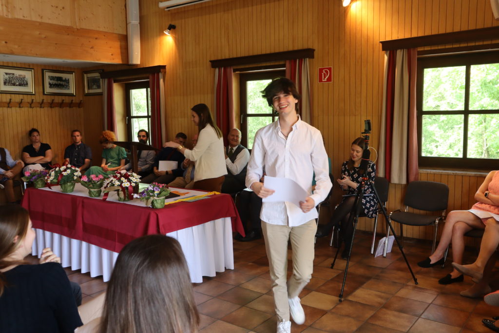 On Thursday, May 12th, students and staff gathered at the Musikerheim of Leopoldskron-Moos, across the street from the school, to give recognition to the outstanding accomplishments of our students in athletics, social/boarding behavior, and academic coursework, leading up to the announcement of the senior honors: ECIS Award Winner, Salutatorian and Valedictorian.