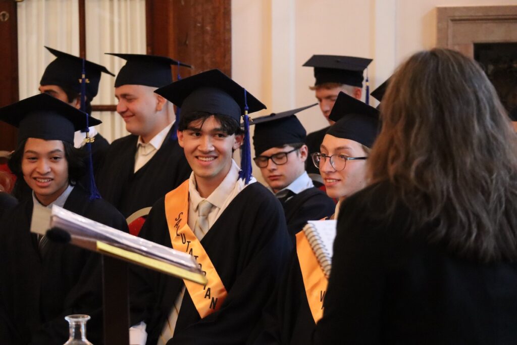 The class Salutatorian, Niels Schmidt, welcomed the audience of families, friends, and classmates, followed by Mr. Lichty, who introduced Valedictorian Bohdan Muzhuk, who delivered a touching and heartfelt speech thanking his friends and family.