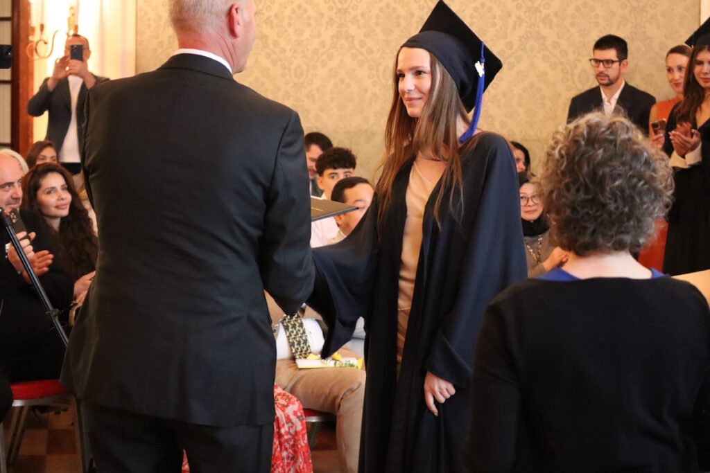 This past Thursday, the 2025 commencement exercises were once again held at the beautiful Kavalierhaus at Schloss Klessheim on the outskirts of Salzburg. By tradition, the members of the senior class of 2025 entered to the strains of Pomp and Circumstance by Edward Elgar played by the Pro Musica Quartet led by Ms. Lardschneider of our teaching faculty.
