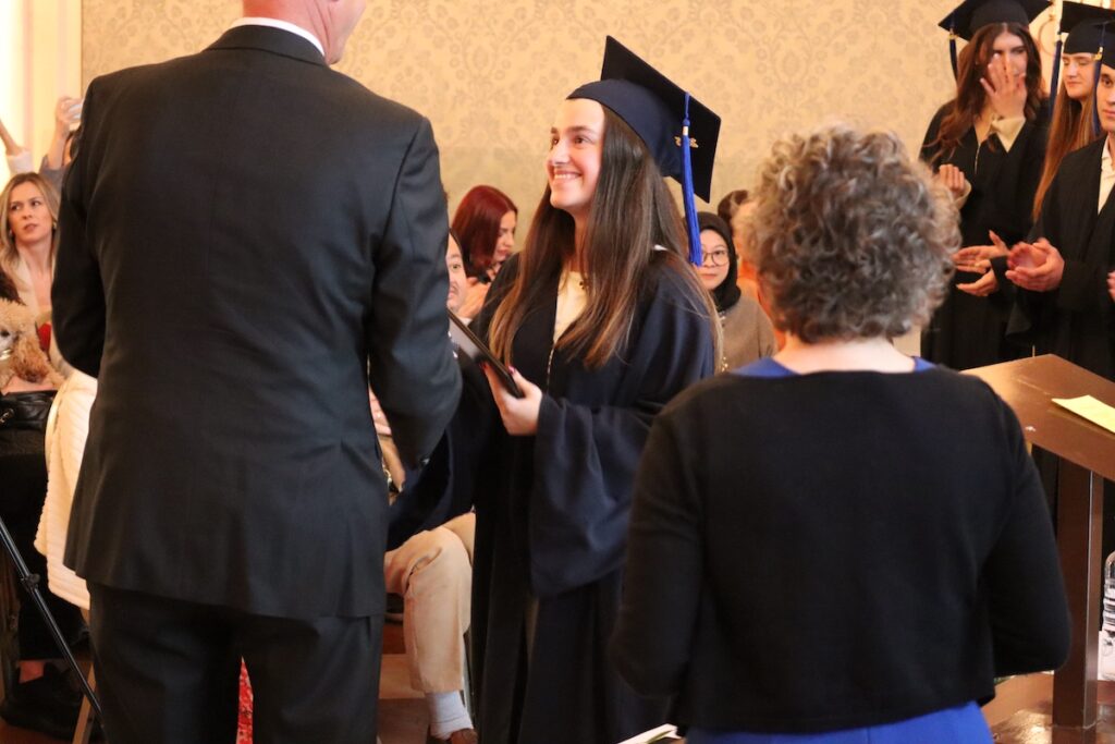 Ms. Nicole Cerone then presented the Commencement Address to the Class of 2025, fulfilling the seniors’ wish that she do so—an indication of the high regard and respect they have for her efforts both as an instructor and as a supporter of their labors over the years.