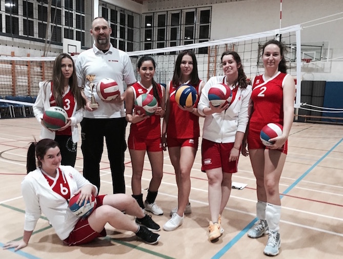The varsity girls volleyball team challenge themselves with a friendly against the U16 team from a local club team.
