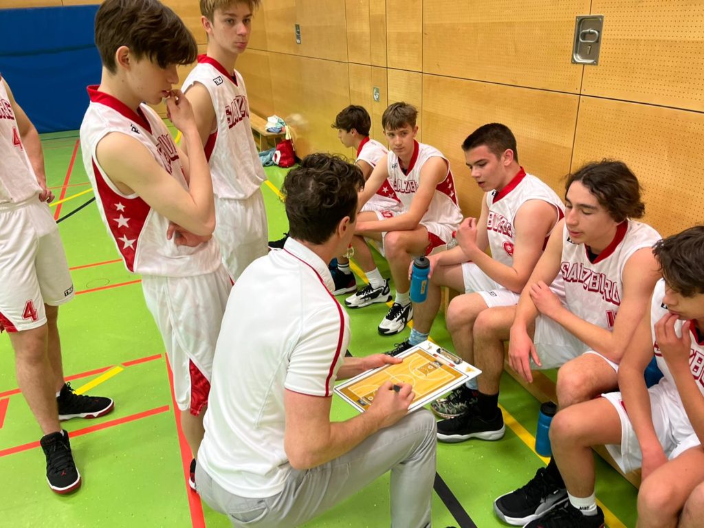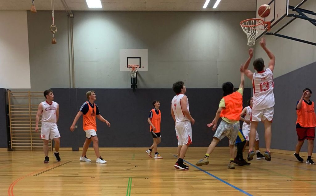 The boys’ basketball team didn’t really know what to expect going into their game against the Vöcklabruck U16 club team on Tuesday night. Upon arrival, they quickly discovered that the other team was young and inexperienced, which was a good opportunity for coach DeWitt to play some of his younger players.