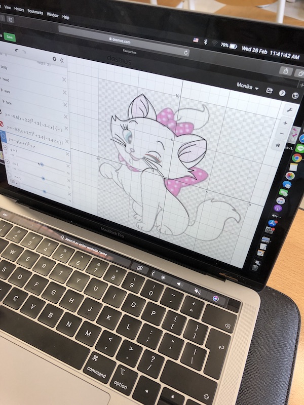 “With this project, we were able to study functions in more detail, their transformations, subtleties, and movements along the coordinate plane, with varying values to make functions fit the picture. In order to use as few functions as possible, we had to carefully select the desired type of function and try to capture as much of the image as possible with it.“